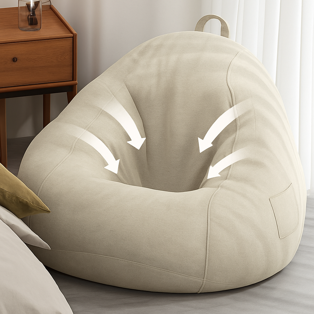 ビーズの柔軟性と包み込むような座り心地が特徴で、体の曲線に自然にフィットします。