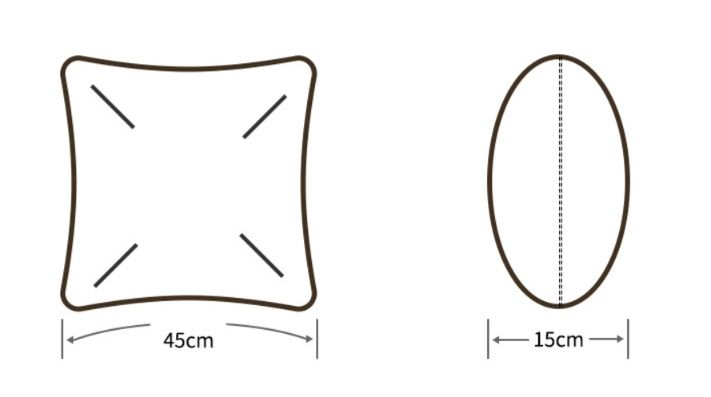 45㎝四方の使いやすいサイズで、ソファやベッドのアクセントに最適です。