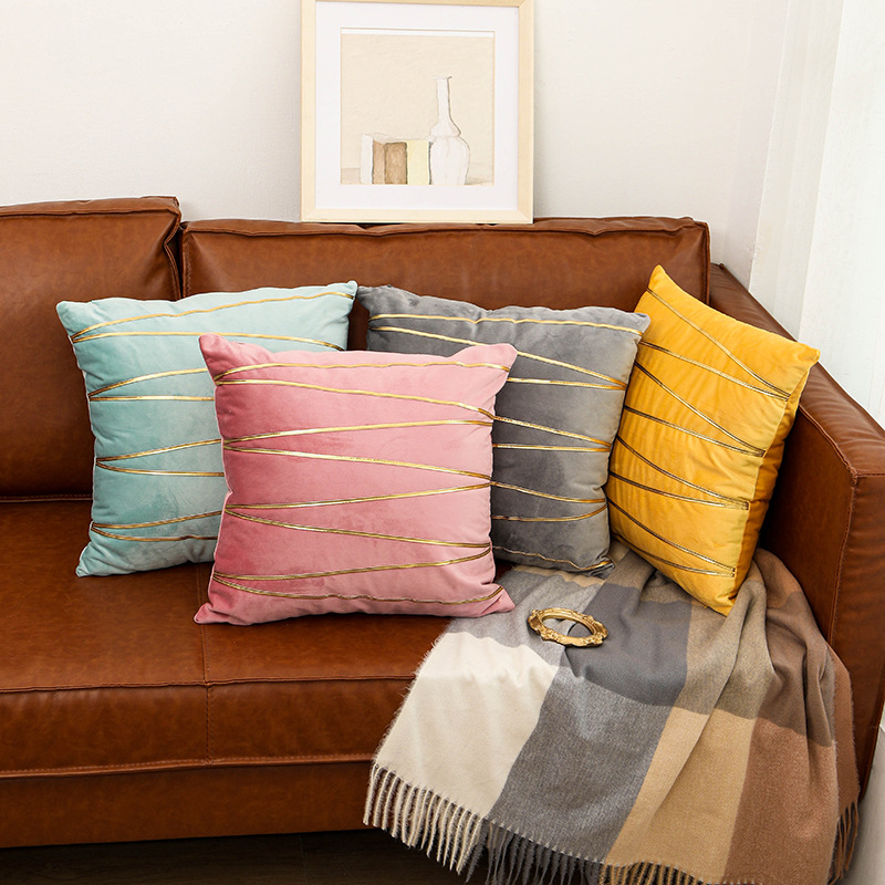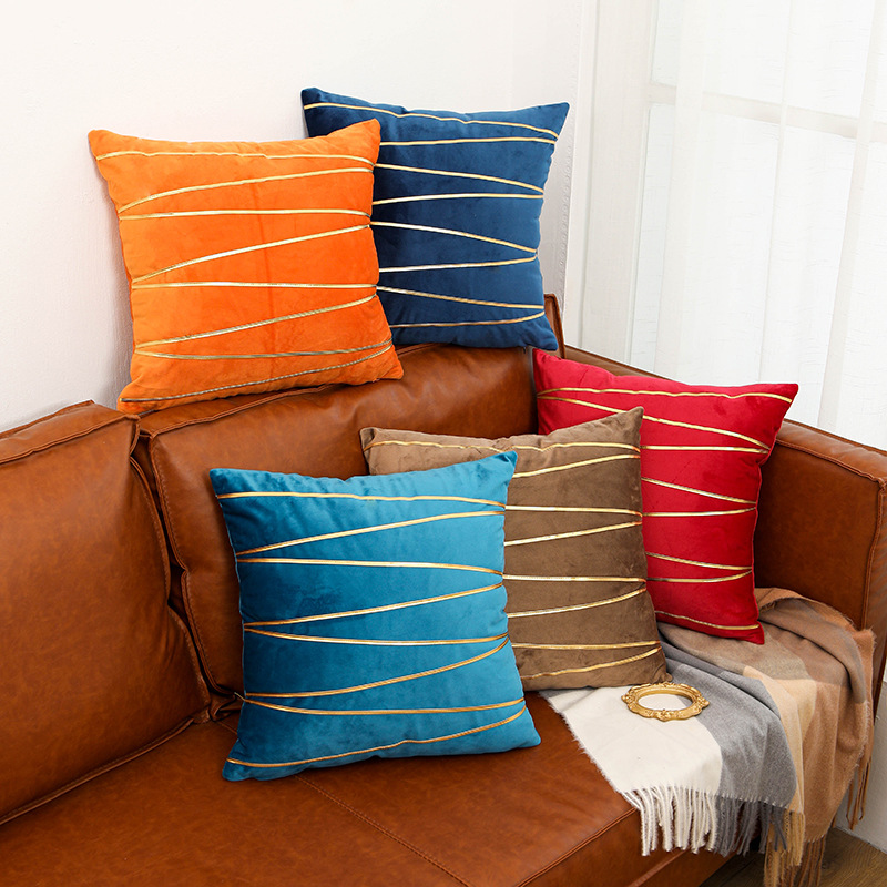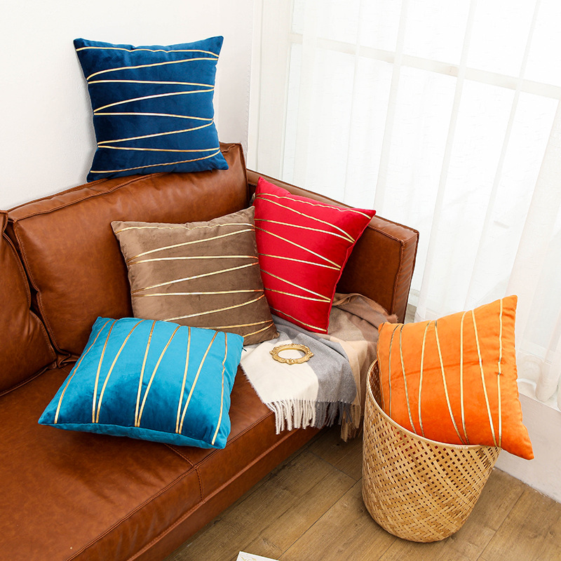表面に施された美しい斜線ラインが洗練された印象を与えるソファクッションです。