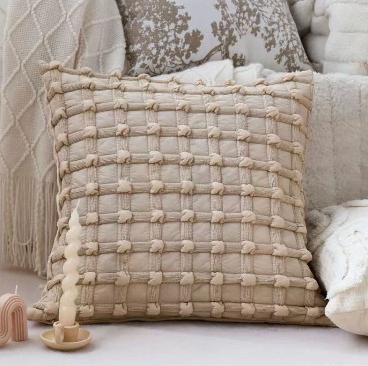立体的な格子模様にふんわりとしたポンポンを散りばめた上質なフランネル素材のソファクッション。柔らかな風合いと豊かな表情が特徴で、リビングやダイニングにぴったりのアクセントに。心地よい触り心地で、くつろぎの空間を演出する逸品。シンプルなデザインながら、存在感を放つこのソファクッションで、毎日のリラックスタイムをさらに充実させよう。